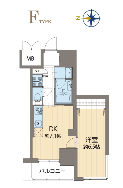 1DKとコンパクトながらもダイニングスペースと洋室がしっかりと区切られている暮らしやすい間取りです。