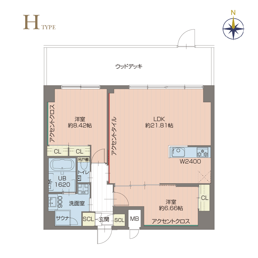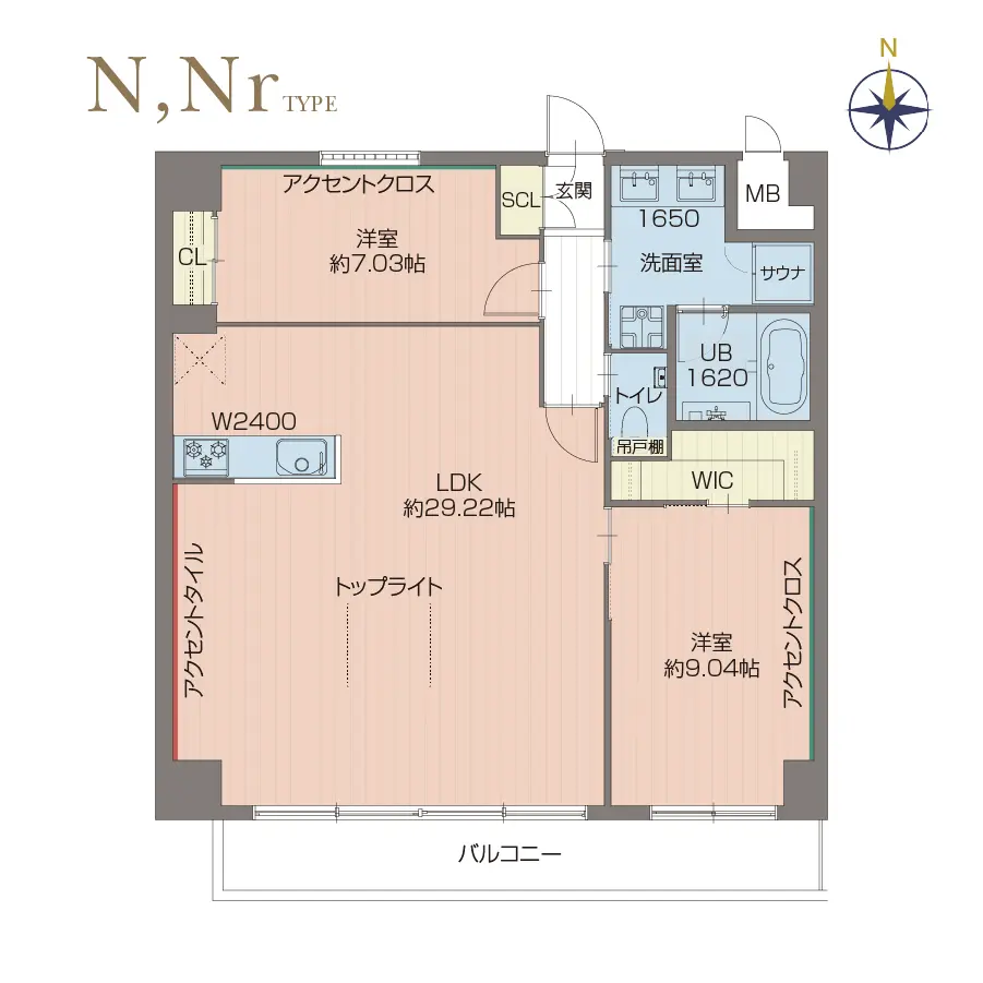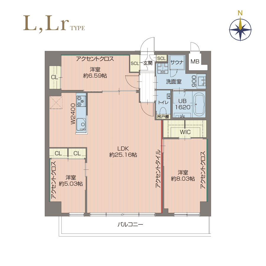 2LDK/3LDKの各居室の洗面室にロウリュができるサウナを設置。