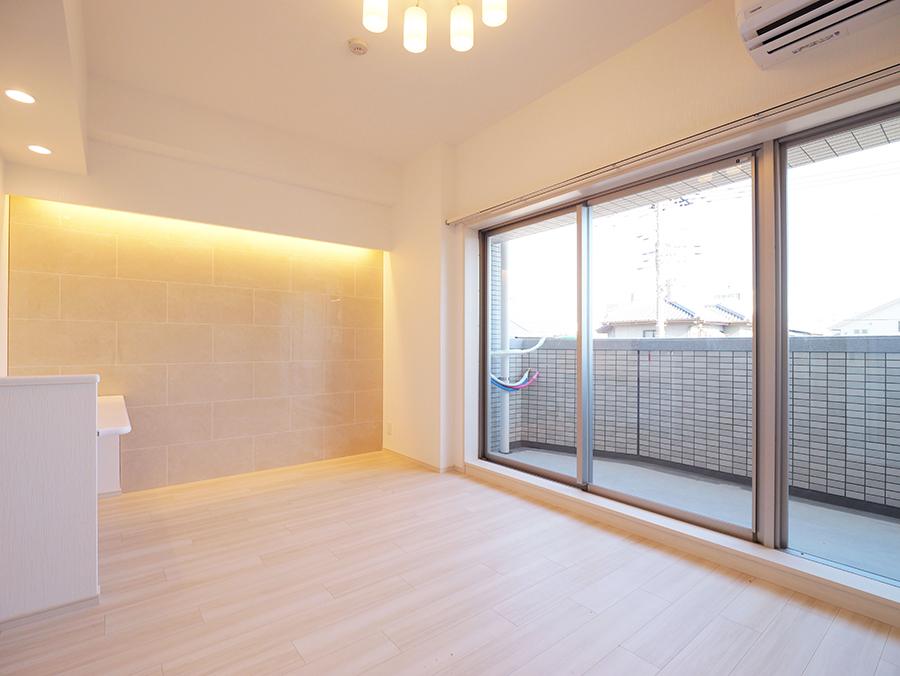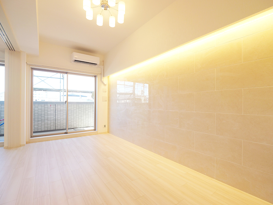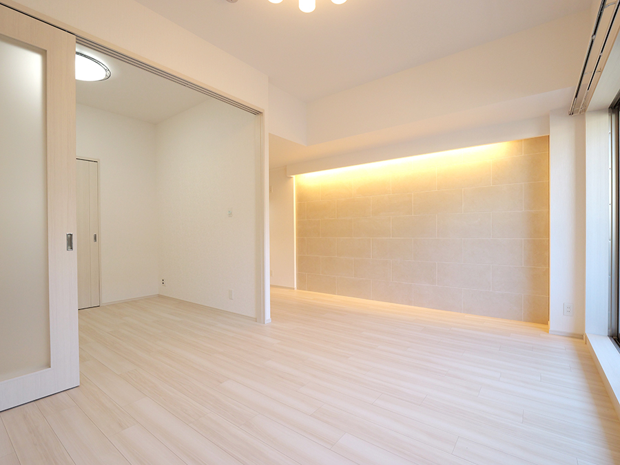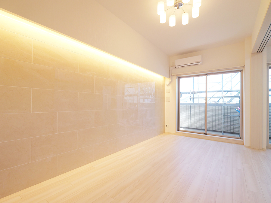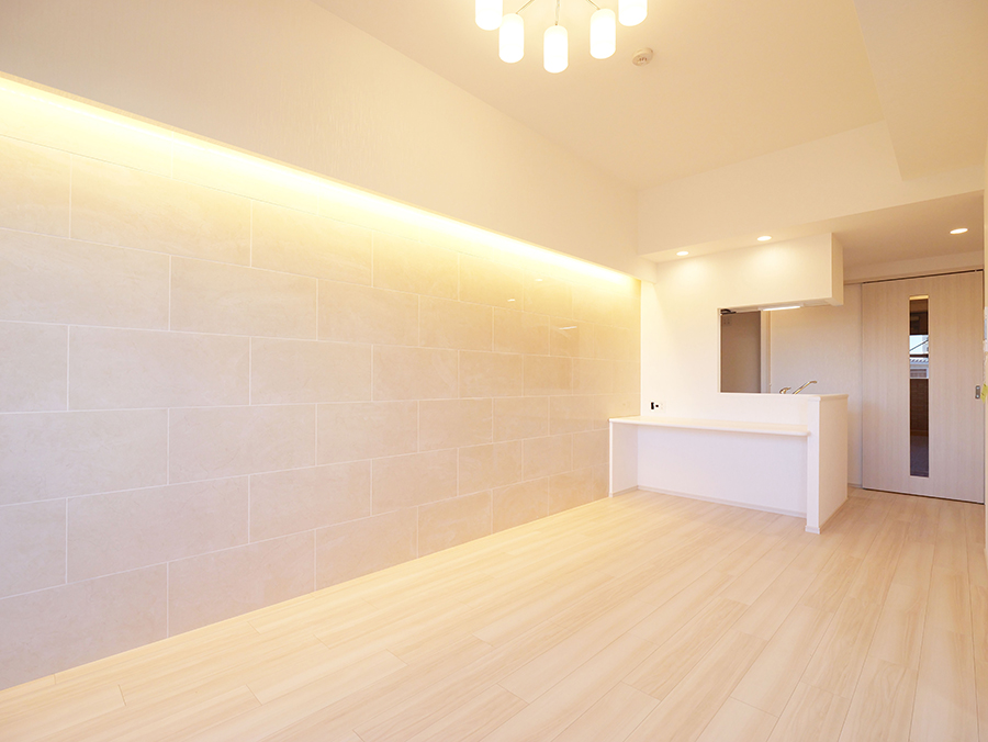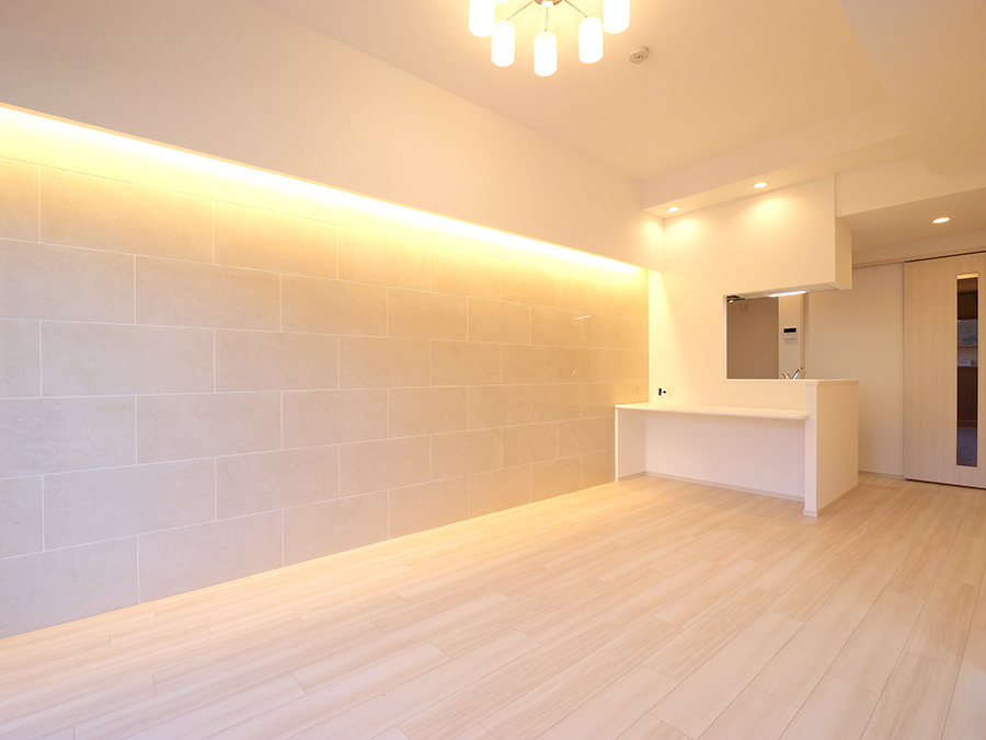 LDKの壁の一部に石調のタイルをアクセントとして採用。よりラグジュアリーでスタイリッシュな居住スペースを演出してくれます。