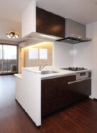 通常の対面式カウンターに比べると奥行きのあるカウンターは、食事はもちろん趣味の作業スペースに適しています。また、テレワーク時のワークスペースとしてもご活用して頂けます。